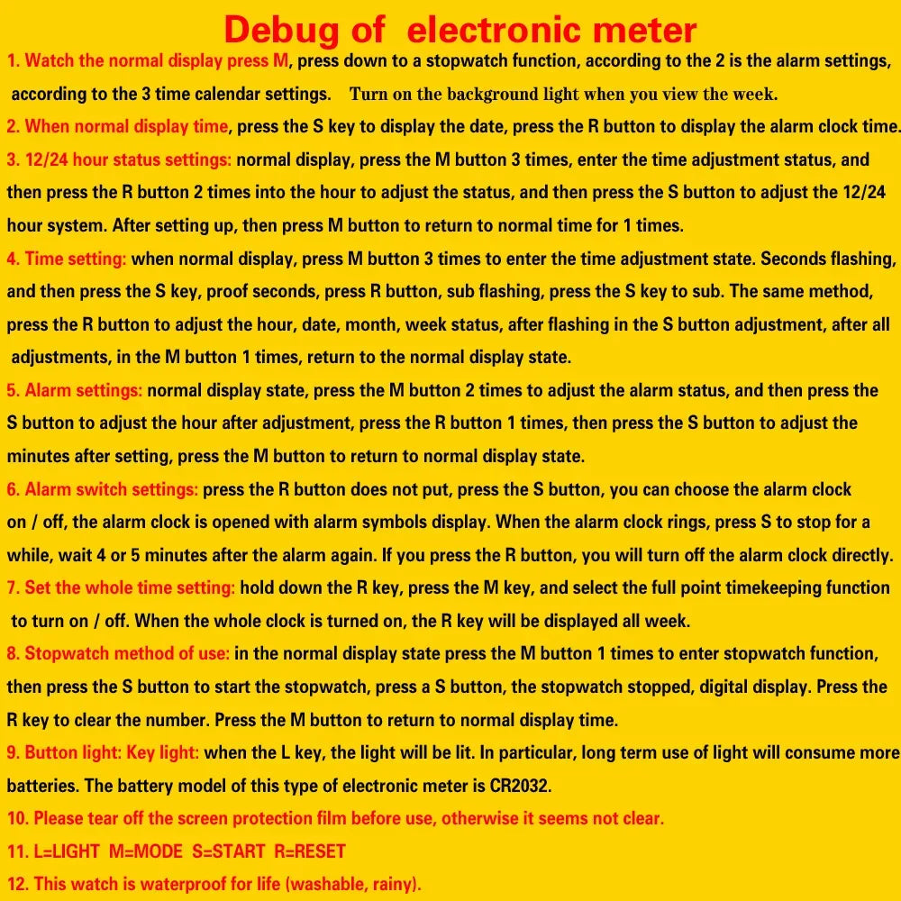Feature: Back Light,Shock Resistant,Led Display,Complete Calendar,Alarm,Week Display